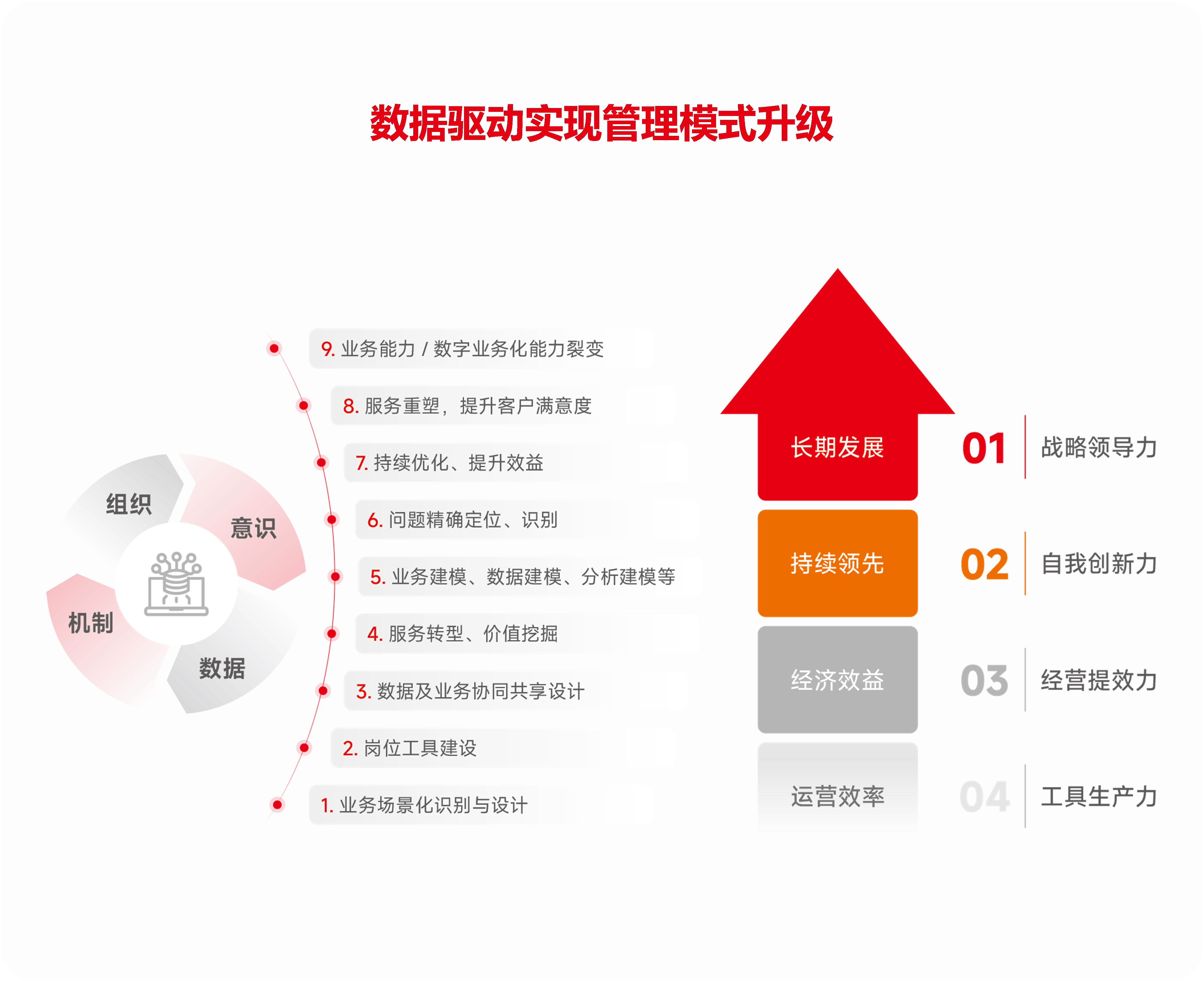 基于数据驱动的决策机制,建筑地产企业可以全面提升运营效率、经济效益、创新能力和战略领导力。这一转型过程涉及运营机制的优化、组织能力的增强以及人员意识的提升,助力企业从传统管理模式向数智化运营管理转变。数智化赋能建筑地产企业实现精益管理,保持领先地位,赢得长期发展。